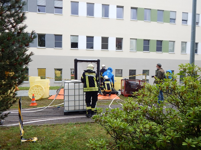 In der Zentralklinik in Bad Berka war es zu einem Zwischenfall in einem Labor gekommen, in dessen Fall es zu einem Brandereignis kam. Zum Glück war alles so geplant, denn es handelte sich um eine Großübung. Am Übungsobjekt wurden wir dann wie vorgesehen dem Gefahrgutzug zugeteilt. Wir stellten ein CSA-Trupp und standen für weitere Aufgaben bereit. Nach Beendigung der Übung halfen wir bei den Aufräumarbeiten der Gerätschaften.