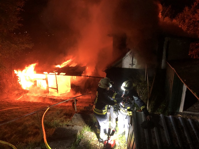 die Brandbekämpfung unter Atemschutz vorgenommen. Parallel bauten weitere Kameraden eine